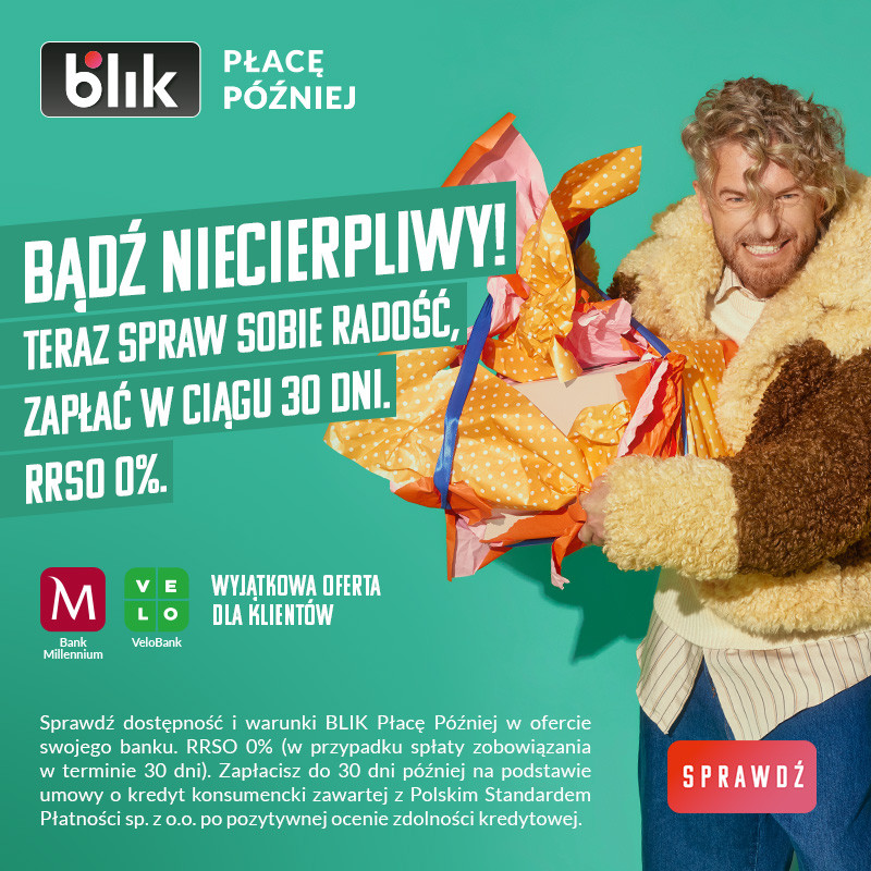 28 Wrz 2025 Już możecie korzystać z BLIKa Płacę Później w naszym sklepie. Nie przepłacajcie na Allegro z PayPo, skorzystajcie u nas! Przypominamy również, że od 200 zł macie wysyłkę gratis, bez kupowania żadnego Smarta!