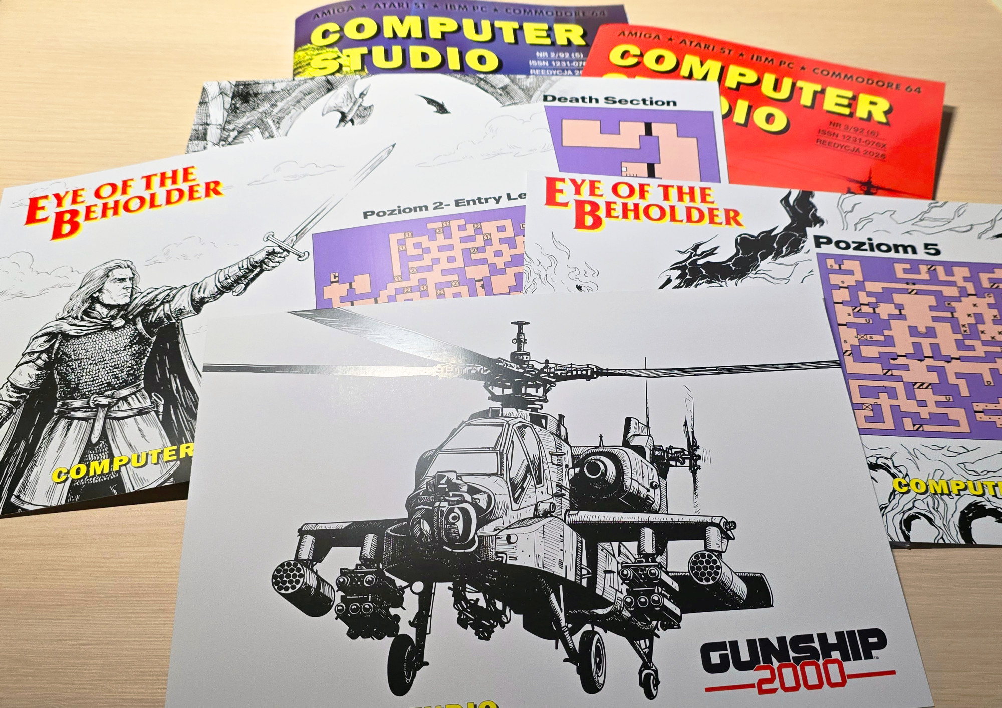 25 Lut 2026 Mamy już kolejne dwa numery Computer Studio. W odróżnieniu od oryginałów - są w całości kolorowe (oryginalnie w kolorze była tylko okładka). Dołączyliśmy też plakaty z mapami poziomów gry Eye of the Beholder!